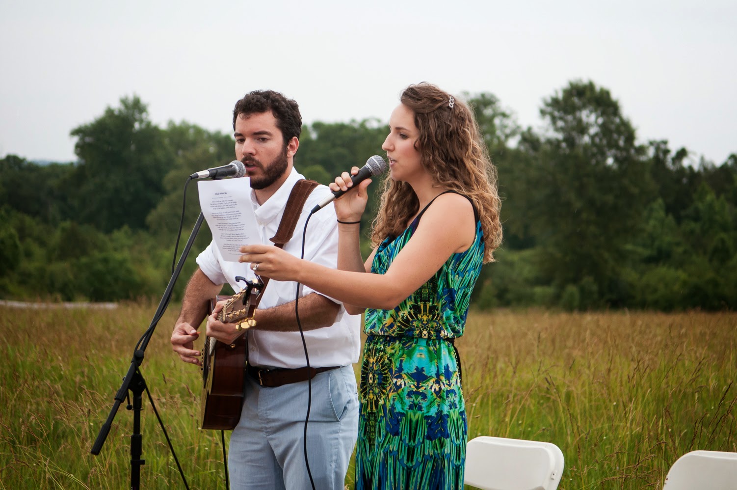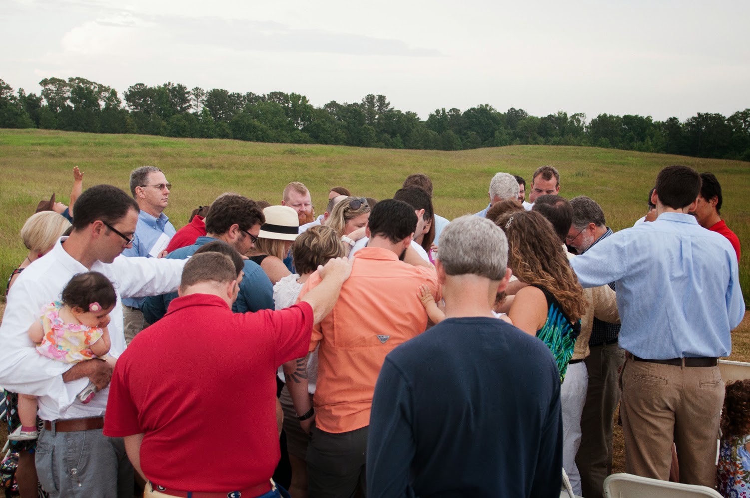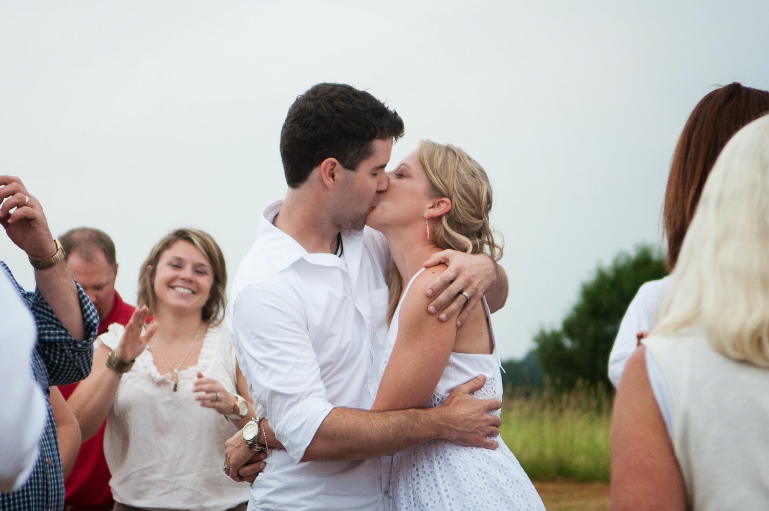 When we got out of the car he looked at me and said that there was a little more to the surprise then I thought. That's when I saw a person crawling behind a hay bale and I got really confused. I wish I could remember his exact words, but they were along the line of He knows we had talked about a vow renewal at some point but didn't want to stress me out with details, so he just planned one himself. Then we walked a few more feet up the hill and all of a sudden I saw a white arbor in the middle of a beautiful field and rows upon rows of people. Leslie later said that I squealed which doesn't surprise me. I just started crying and walking and looking. I kept spotting more friends who had come from in town and out of town, both of our families who had driven from Alabama, south and north Georgia, and South Carolina, and our sweet boys all dressed up in their khakis and white shirts.